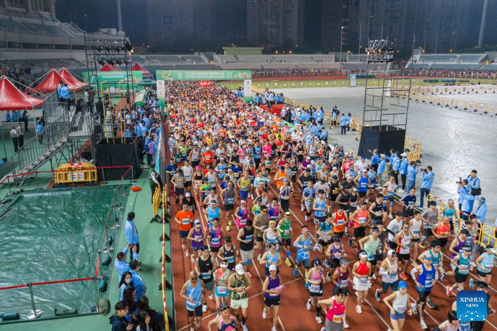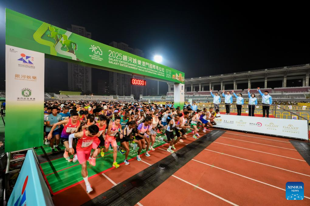 Runners start off during the Macao International Marathon 2025 in Macao, Dec 7, 2025. [Photo/Xinhua]