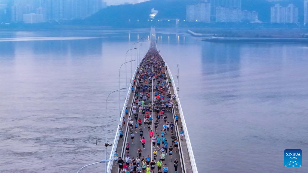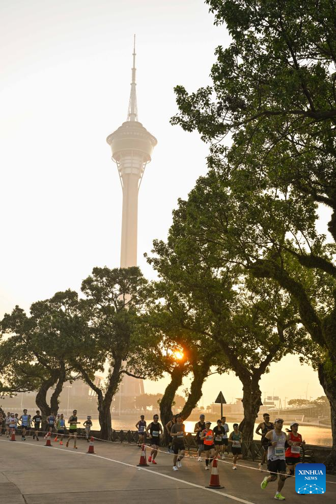 Competitors run during the Macao International Marathon 2025 in Macao, Dec 7, 2025. [Photo/Xinhua]