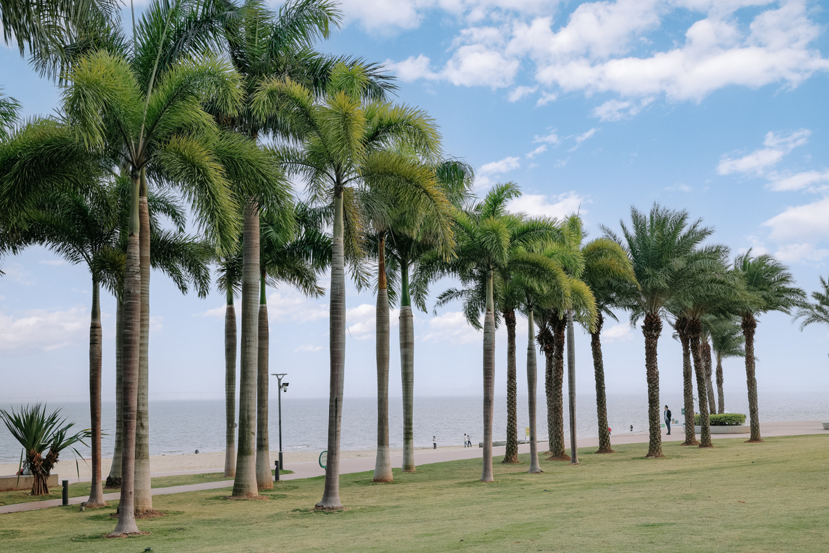 Huandong Romantic Coast has blue skies, white clouds, sandy beaches, and green trees. [Photo provided to chinadaily.com.cn]