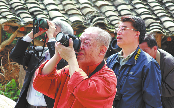 Liu Yinzeng (center) takes photos of crested ibises in Yangxian, Shaanxi province, in 2011. Three decades earlier, his discovery of seven birds in Yangxian in 1981 was believed to be the last remaining individuals of the species worldwide. ZHANG PENG/FOR CHINA DAILY