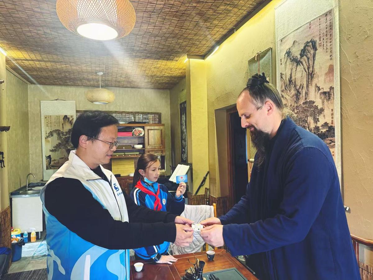 It is the first social security card given to a non-citizen in the Wudang Mountain Tourism and Economic Special Zone. The human resources and social security bureau staff provided door-to-door information registration, verification, and photo collection.
