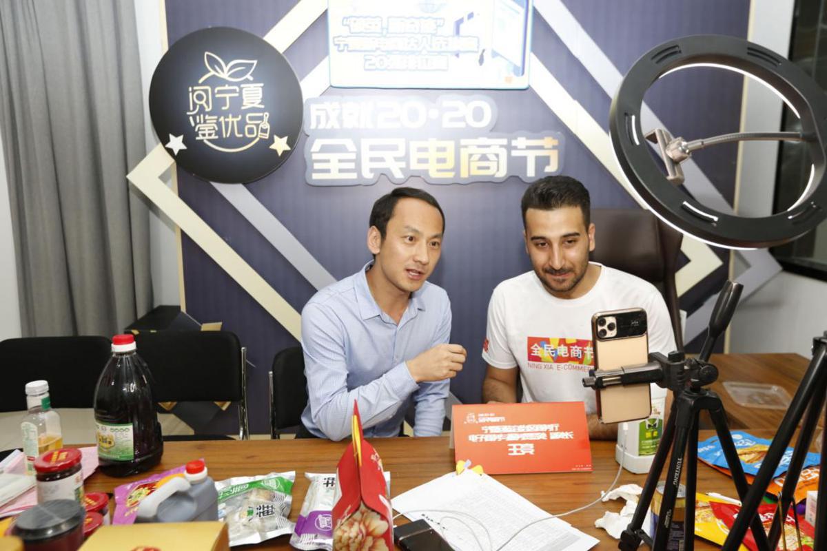 Ahmed Mohammed Jaber Alkalthoom joins a sales live-stream in the Ningxia Hui autonomous region. [Photo by Ahmed Mohammed Jaber Alkalthoom/For chinadaily.com.cn]