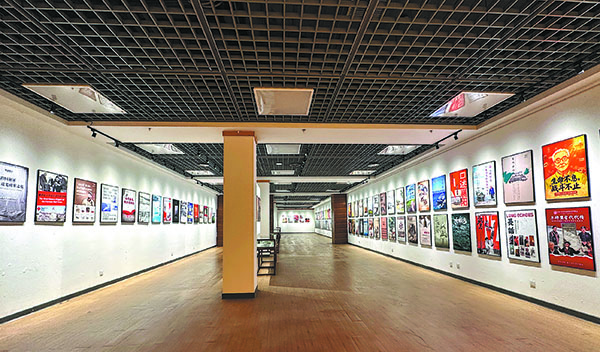 Posters for the participating projects of the China International Exhibition of Oral History line the walls at the Communication University of China's Center for Oral History. [Photo provided to China Daily]
