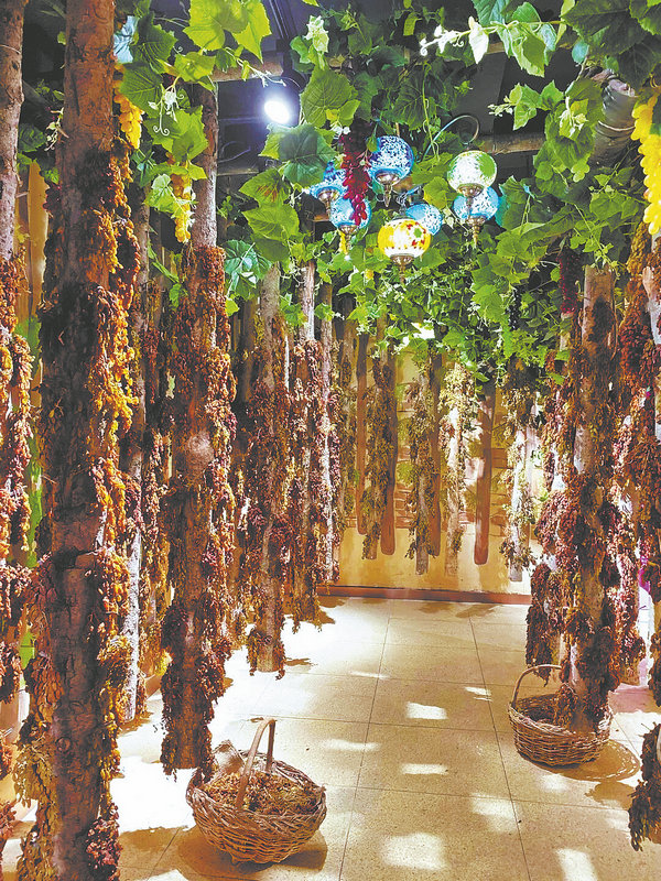 A small air-drying barn is displayed at Urumqi's Fruit Bazaar. [Photo provided to China Daily]