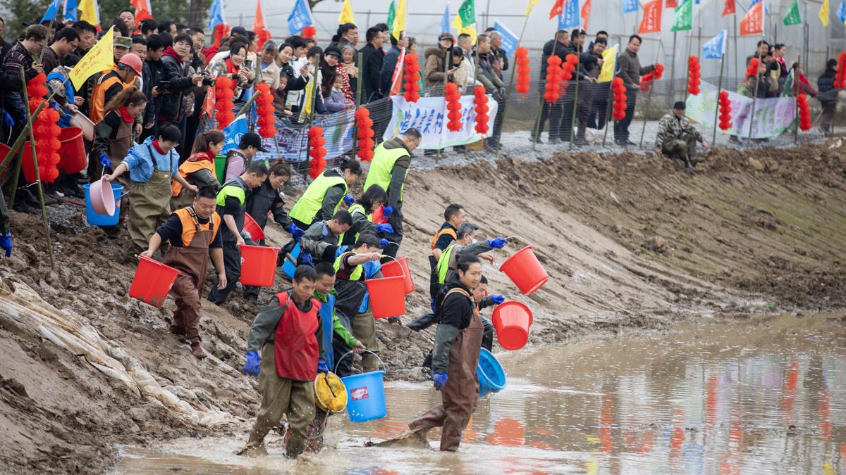 An annual celebration known as the Gantang Festival, or "Drying Pond Festival", took place in Gaoli village, Hengyang, in central China's Hunan province, on Monday. Thousands of residents and tourists rolled up their sleeves and waded into the muddy fish ponds, embracing a lively tradition that boosts the festive spirit ahead of the Chinese New Year.