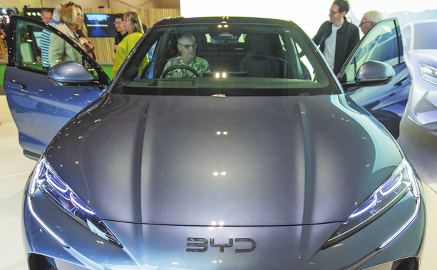A BYD car on show at an auto expo in London. XINHUA