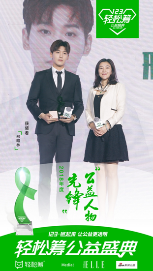 12月3日,“123轻松筹公益盛典”在北京圆满落幕。盛典当天,众多明星、公益组织以及社会各界的爱心人士齐聚一堂,共同见证公益所带来的向上力量。人气演员邢昭林荣获“123轻松筹公益盛典”颁发的“2018年度先锋公益人物”奖。当天奖项由知名主持人张丹丹作为开奖嘉宾,轻松筹创始人、董事长兼CEO杨胤为邢昭林颁奖,以表彰其在公益领域的突出贡献。