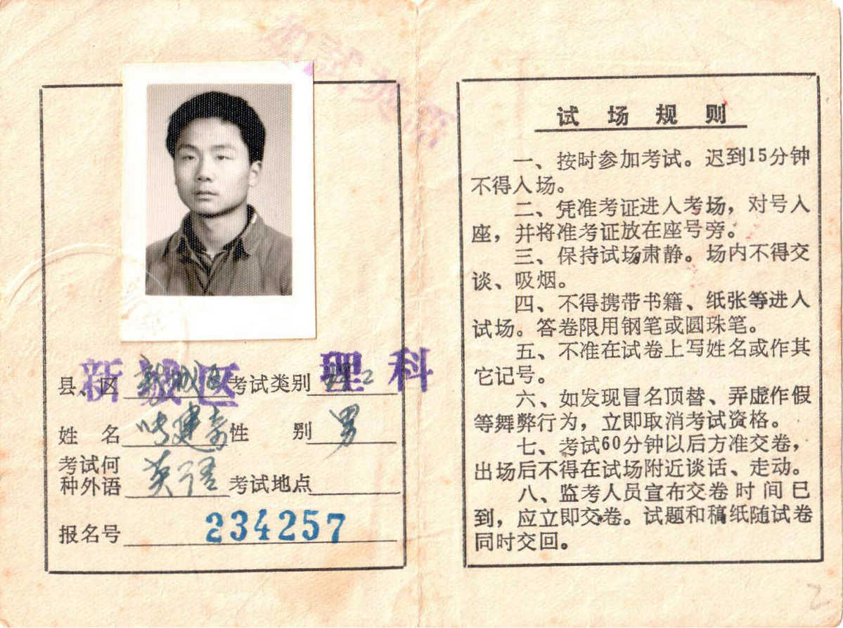 1979年高考前3个月,我在报志愿时才知道,自己是理工科学生,不可以报考他想学的法律专业。特殊的时代才会出现特殊的阴差阳错,理科生参加文科高考,然后报考理科专业,居然被录取了,或许这就是命中注定。