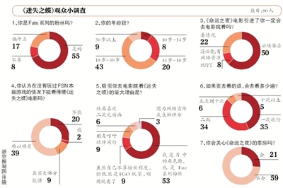 在新京报记者对抽样的80名粉丝调查中,可以发现大多数人对票房不是特别关心。资深动漫爱好者袁蕾提到,《命运之夜》的粉丝群体极为特别,调查中80人中有5人在电影院看了30次,黏性极强,但普及率不高,“国内类似的粉丝群体大概只有新世纪福音战士系列粉丝有这么高的黏性。在《命运之夜》刚进入国内的时期,二次元群体和市场非常小众,因此当时的爱好者具有开拓者的性质,整个系列的资料引入国内以及作品翻译都是依赖早期粉丝的自发行为,这就决定了他们拥有极高的忠诚度与黏性。”银翼提到,自己认识的许多Fate粉丝,有着强大的消费力,“我朋友中甚至有人去电影院看了数十遍《恶兆之花》,很多人‘入坑’就是会这么痴迷,当然也有不少人更偏向于喜欢二次元文化,但不一定入坑‘月世界’,这个群体也许会感兴趣进而尝试更多了解这个IP。”