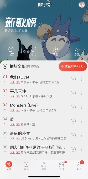 上周《歌手·当打之年》迎来最强奇袭阵容,胡夏、吉克隽逸以及刘欢爱徒秦凡淇,也让第五期节目火花四射,现场音频LIVE全面霸榜网易云音乐,第五期歌曲占据网易云音乐3月8日飙升榜前六名,全面霸榜,华晨宇《我们》新歌榜、飙升榜双榜夺冠,截止发稿前,《我们》、《Monsters》Live版,仍稳坐网易云音乐新歌榜第一和第三名。(时间截止为3月13日上午9点)