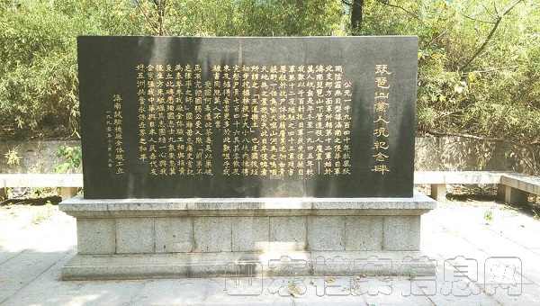 济南琵琶山“万人坑”遗址位于济南市南辛庄西路138号,济南试验机厂内琵琶山以南。1937年12月27日,日军占领济南,1938年6月,建立了济南军事法庭。1940年秋,日军华北方面军所辖第十二军、四十三军,强迫济南人民在西郊琵琶山下挖坑造墙、修筑堡垒,营造杀人基地。自1940年冬至1945年秋,日军在琵琶山下残暴屠杀抗日军民,致使此处尸体纵横、白骨累累,被群众称为“万人坑”。图为济南琵琶山万人坑遗址纪念碑。