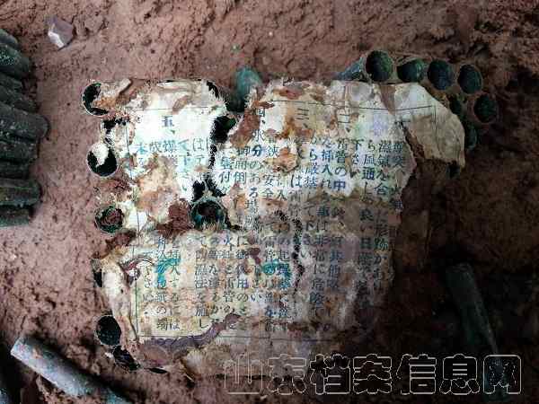 济南琵琶山万人坑,探沟内弹药背后的清晰日文标识。