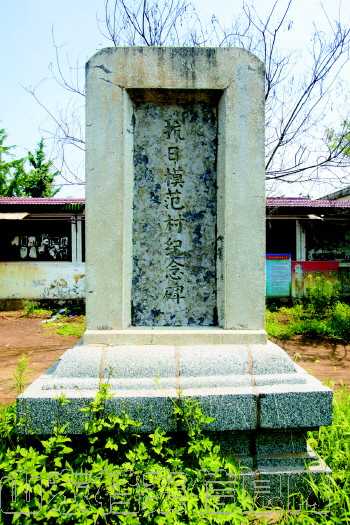西山前村抗日模范村碑文,上面刻有抗日烈士的名字。
