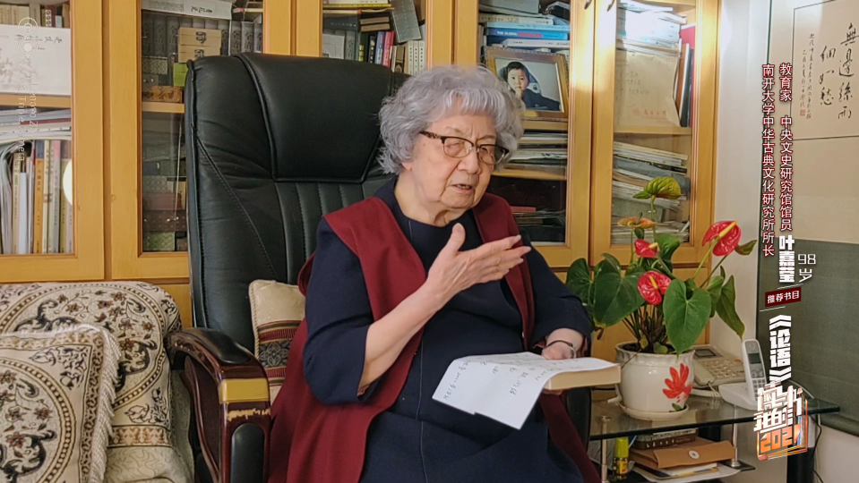 同样,98岁的叶嘉莹先生回到了自己的儿时,想到了自己受教育时的情景,那时她读到的第一本书就是《论语》。视频中的她还现场开启了课堂模式,给观众科普了《论语》的读音,并讲解着“朝闻道,夕死可矣”这句话中的“道”指宇宙间的一切法则、道理,要铭记并解其意,要读书和实践。