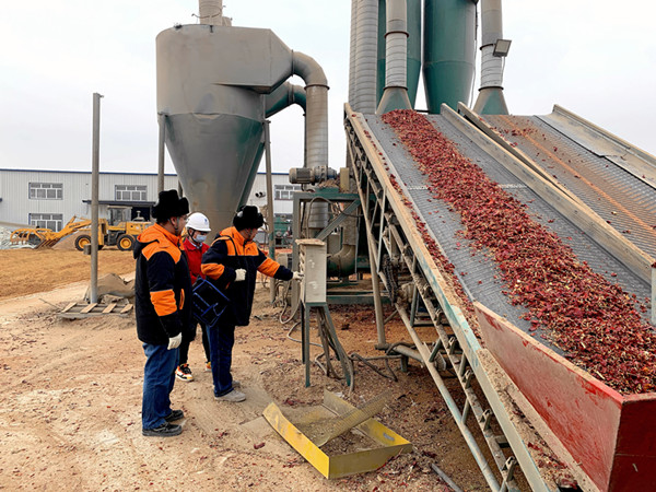 国网奎屯供电公司工作人员为辣椒加工企业提供上门服务(徐占卿 摄)