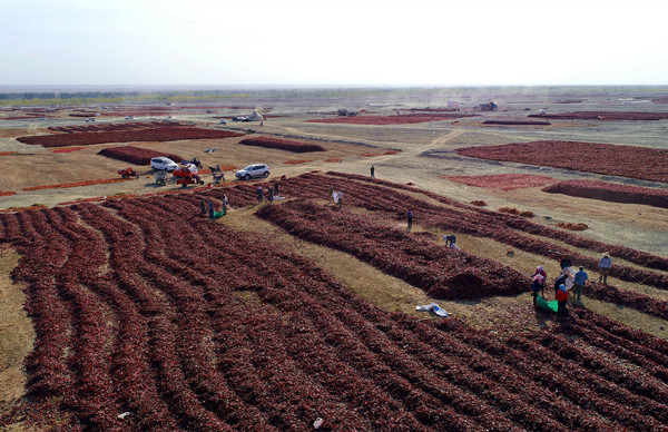 秋季的焉耆县辣椒晒场( 王磊 摄)