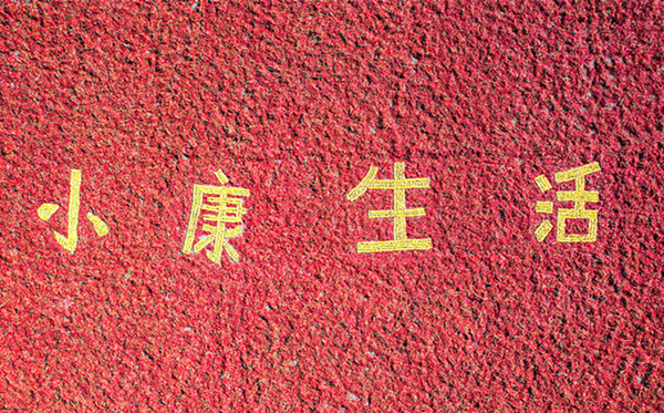 2021年10月1日,沙湾市安集海辣椒种植户在晾晒场拼出“小康生活”,向祖国送祝福(朱威 摄)