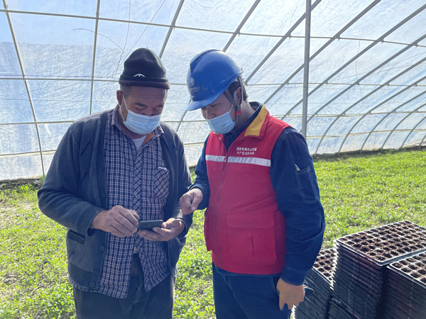 国网喀什供电公司员工给种植户讲解网上国网App(曹洋 摄)