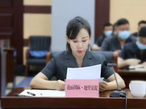 自治区高级人民法院机关党委副书记迪丽胡麻·地里夏提分享学习内容