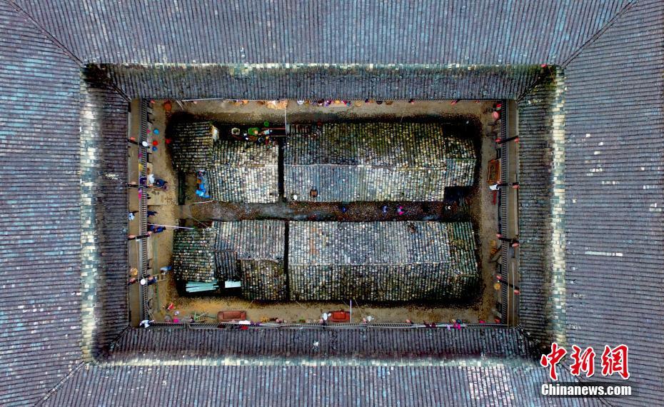 12月9日,航拍位于江西省赣州市龙南县境内的燕翼围。燕翼围是一座四层楼高、层层环通的砖木结构方形围。刘占昆 摄