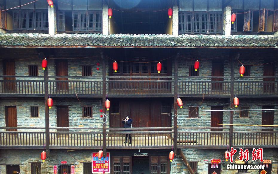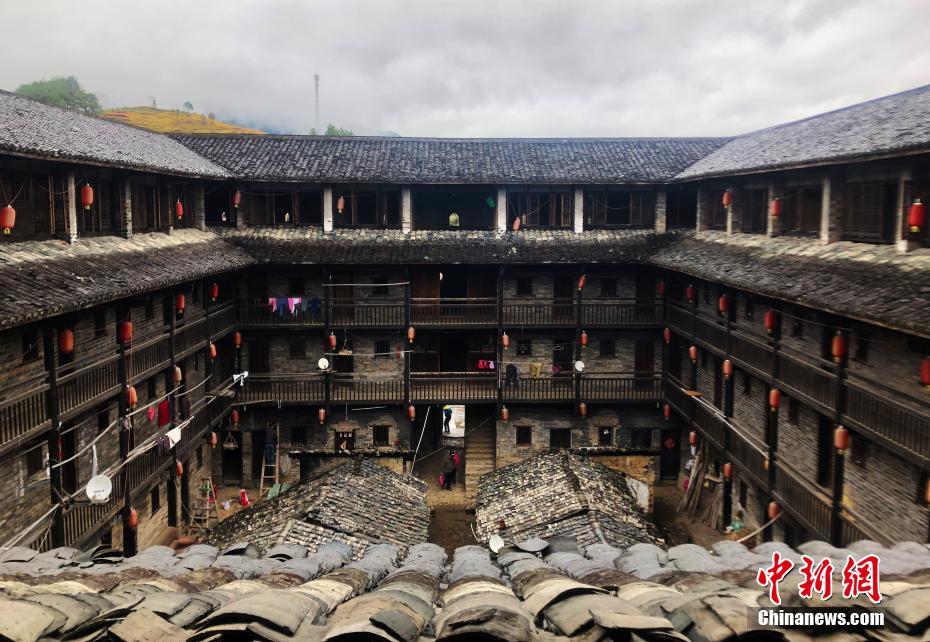 全围以大门和厅堂为中轴,每层对称建房34间,共136间房。如今,还有居民住在燕翼围里。 刘占昆 摄