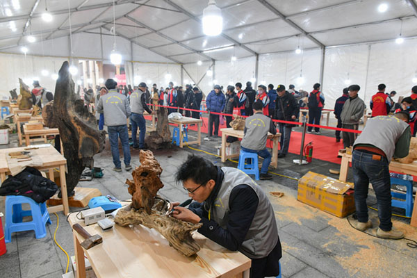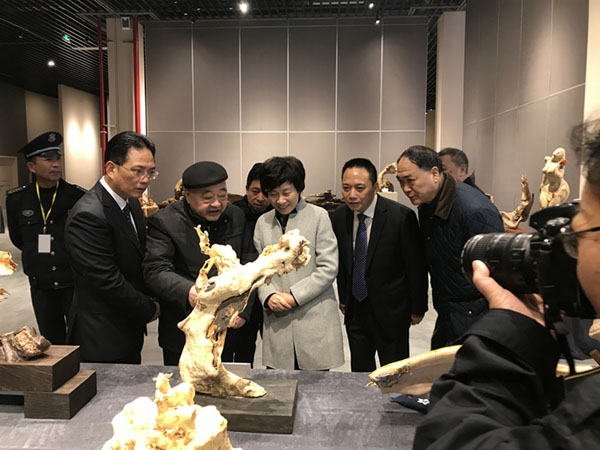 12月26日,中国(嵊州)根雕艺术精品博览会在嵊州市文化创意产业园开幕。来自全国18个省市区90多位各级根雕大师的208件根雕精品参展。