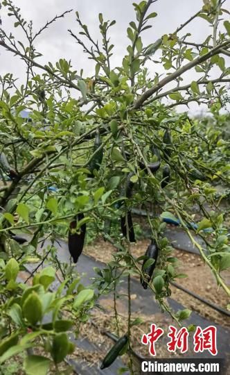 图为海南省琼海市大路镇“世界热带水果之窗”内种植的手指柠檬。 尹海明 摄