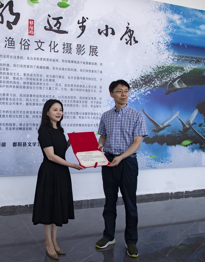 江西省文联主席、中国评协副主席叶青代表省文联向鄱阳湖博物馆捐赠一批摄影作品后,到场看望驿友们并参加相关活动。