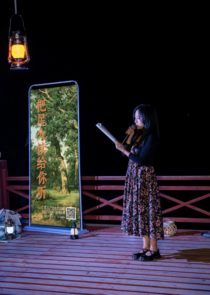 “……越是困厄越要把文学搂抱得很紧,这样更能认清它的真面目真用途。我们因虚弱、惶惑、灰暗向文学借一簇微光,然后逐渐变得明亮开阔和自信。 ”叶青读完这些句子后说:星火驿站一直在寻找热爱文学的无限的少数人,“把《星火》读给你听”系列活动让文学从少数人的孤芳自赏中走上街头、走向大众,是非常有意义的。