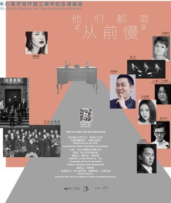 12月21日,应主办方文化乌镇的邀请,为纪念木心美术馆开馆三周年暨木心先生逝世七周年,刘胡轶与那些曾将《从前慢》精心改编的演唱者们和谱曲木心作品的音乐家们,在木心先生的故乡乌镇-乌镇大剧院里将上演一场“他们都唱从前慢”纪念演唱会。刘胡轶作为此次活动的策划人,在谈到活动的缘起时表示,这就来自于对木心先生以及其作品的敬爱之心:“想法比较单纯,就是想为先生做点事情。”同时他也小小的剧透了一点,在这场音乐会中他将会献上为木心先生诗词全新谱曲的歌曲作品——《春汗》与《大卫》。