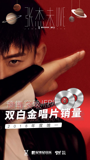 12月19日,著名歌手张杰的第12张实体专辑《未·LIVE》在预售期间销量累计超过6万张,突破国际唱片协会IFPI中国内地双白金唱片销量标准,成为星外星平台2018年度唯一预售期内就突破双白金销量的专辑。据悉,该实体专辑已于今日正式上市。