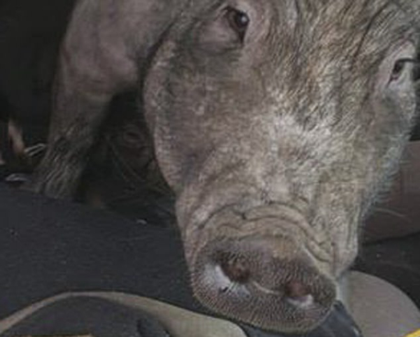 负责处理此事的是杰森·福斯特(Jason Foster)警官。他回忆,3月26日,一辆皮卡车在公路上频频变道,最后被他拦停。福斯特警官本以为司机正分心看手机,走近却惊讶地发现对方腿上竟有一大一小两头猪,其中较大的那头目测重约250磅(约113公斤)。