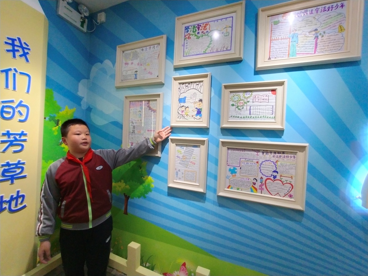 凤凰街北星小学六年级的讲解员胡洋睿说,“我们平均每个星期都会来这里上一次课,然后也会有比较多的老师和同学来听我们讲解,在这里我们学到了很多很多,我们知道了应该用法律来保护自己。”刘佳怡补充道,“平常上课时都会讲一些关于法律以及自我保护的知识,一年级的小弟弟小妹妹们,也会和我们一起在这里学习。”