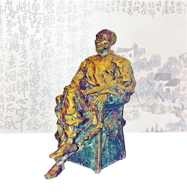 永川博物馆三楼,在陈子庄艺术陈列馆内,由江碧波女士雕塑的陈子庄塑像在静静凝视着永川的变化和发展。