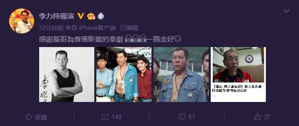 6月2日,香港导演李力持在微博发文,宣布演员李兆基去世,享年70岁。此前他曾确诊罹患肝癌,在朋友的帮助下接受手术抗癌成功。李兆基是中国香港无线电视台编导、演员、监制,因外形凶悍又经常扮演恶霸,被封为“ 香港电影圈四大恶人”之一,代表作有《古惑仔》《纵横四海》《美丽传说》《美味天王》《食神》《扫毒》等。