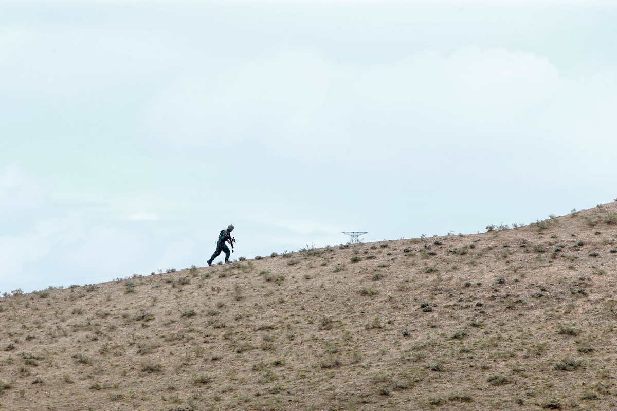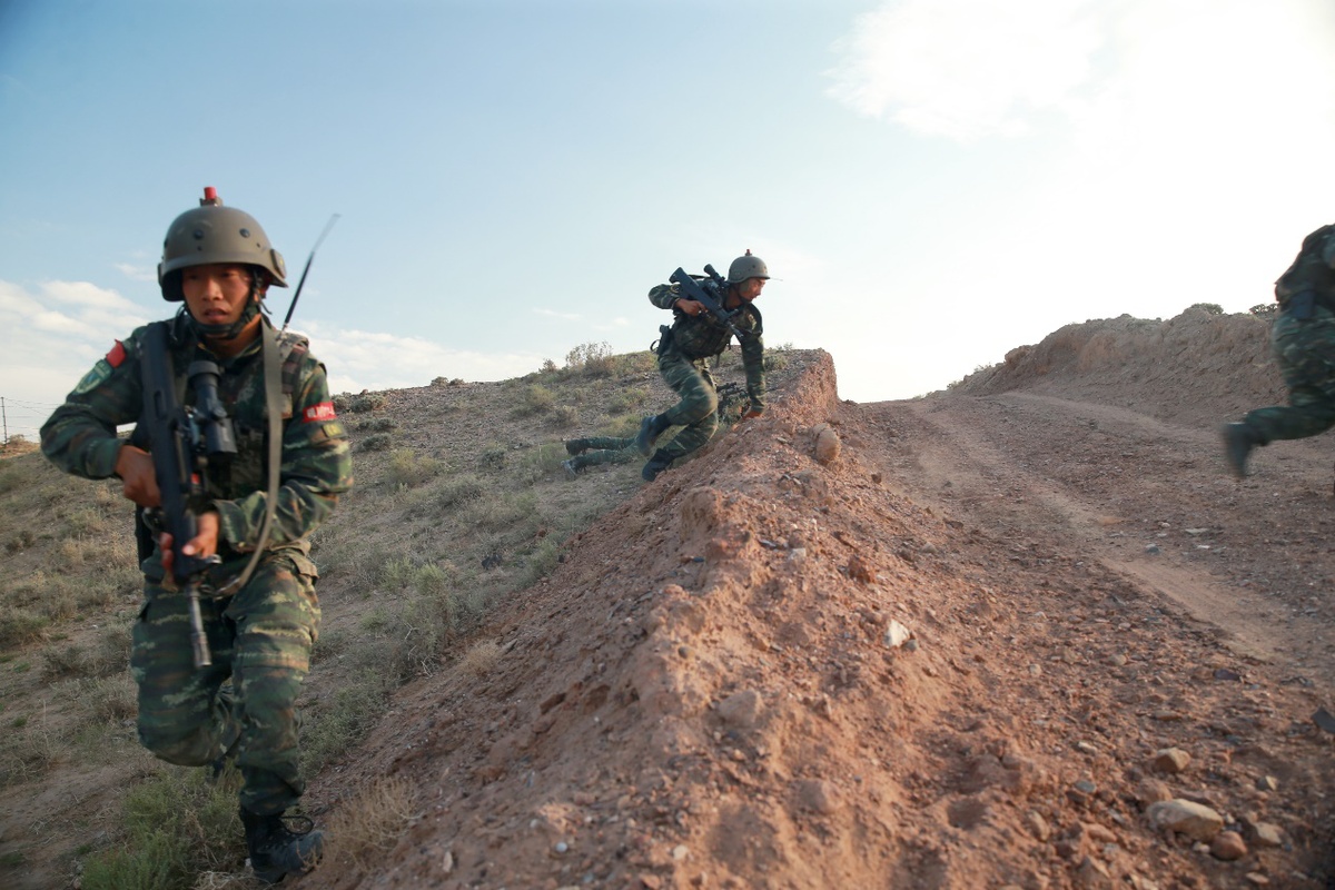 6月22日,武警宁夏总队 “魔鬼周”极限训练中,特战队员在位于贺兰山下的宁夏中卫市狼巴井村地域展开山地搜剿战斗。