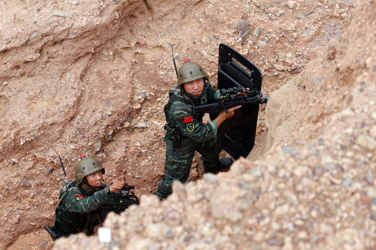 战斗到了最后时刻,陈普及时调整战术,兵分三路从外围实施迂回包抄,队员们翻过陡峭的山头,通过潜望镜观察发现,最后两名筋疲力尽的“暴恐分子”正隐匿在山洼里。