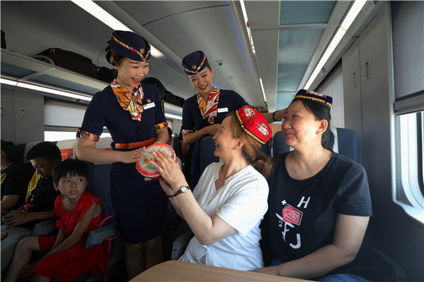 “年初的时候在兰州见过‘绿巨人’,我就想,咱们啥时候能有这个车呀,没想到梦想这么快就实现了。”值乘过绿皮车、红皮车、蓝皮车的首发列车长赵洁说,“我是铁三代,能值乘‘复兴号’奔向复兴,我觉得特自豪!”徐涛