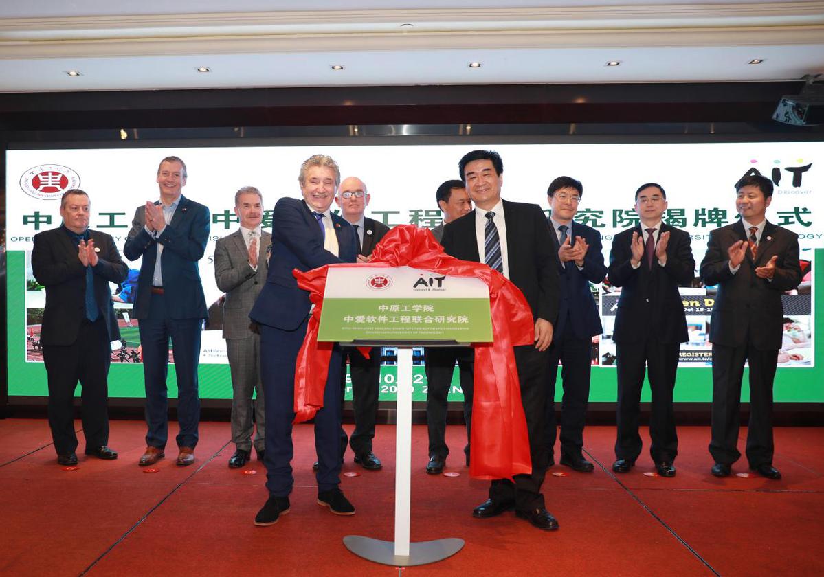 近日,中原工学院中爱软件工程联合研究院揭牌仪式在郑州举行。爱尔兰教育与技能部副部长约翰·郝利根(John Halligan)与河南省人民政府副省长何金平共同为研究院揭牌。