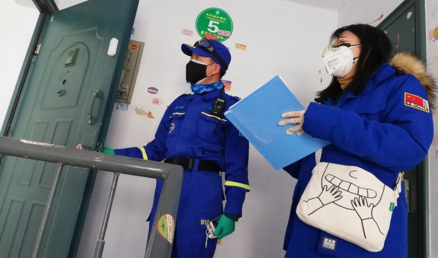 下午继续挨家挨户的敲门记录住户信息,樊队长不断强调要注意保证安全距离,保障自身安全……