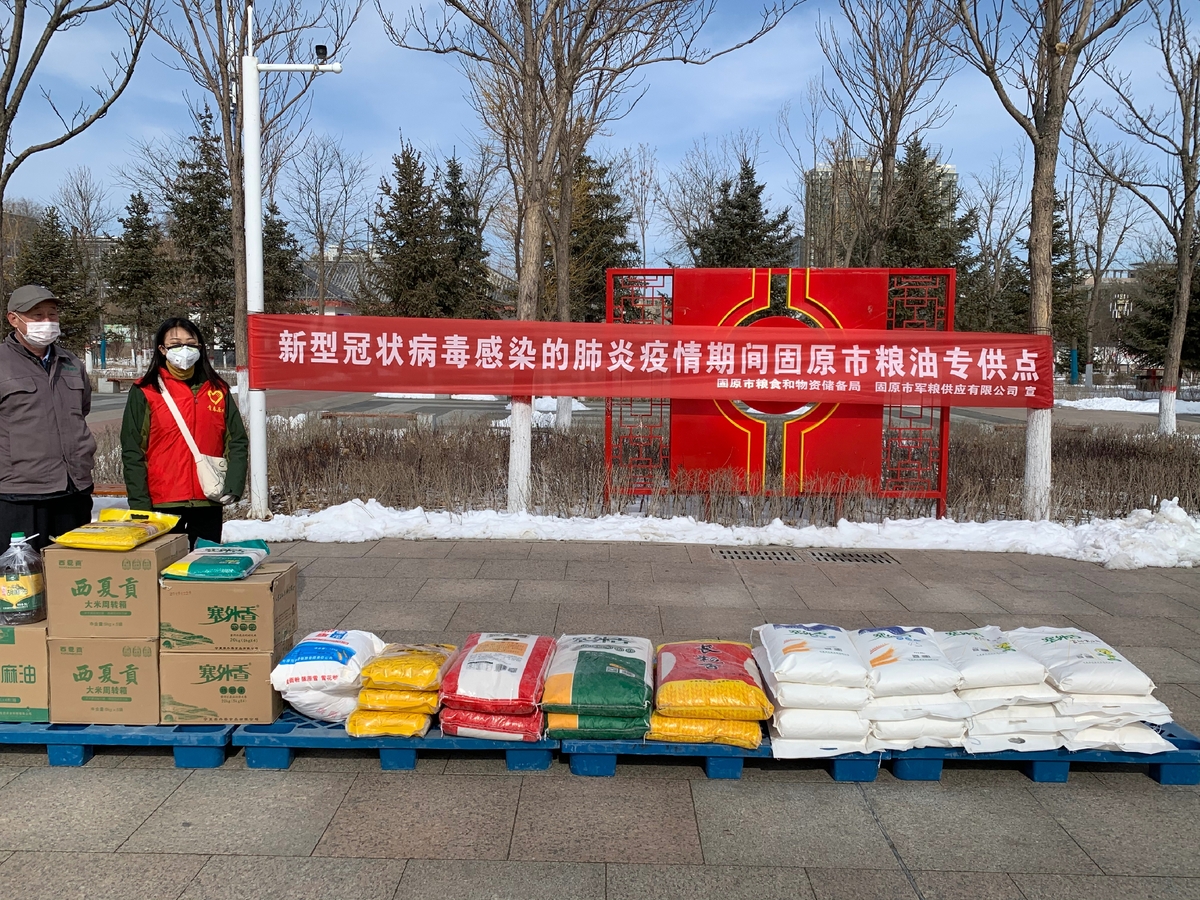 在给其他队员送泡面的路上,看到路边设立了粮油专供点,下车和买粮油的大爷聊了聊天,说是军粮供应公司的,供应点已经设了4天了,响应政府号召,在固原市内设了四个点,大袋米面比平时降价10块,小袋降价7块,为疫情防控尽着自己的一份力。