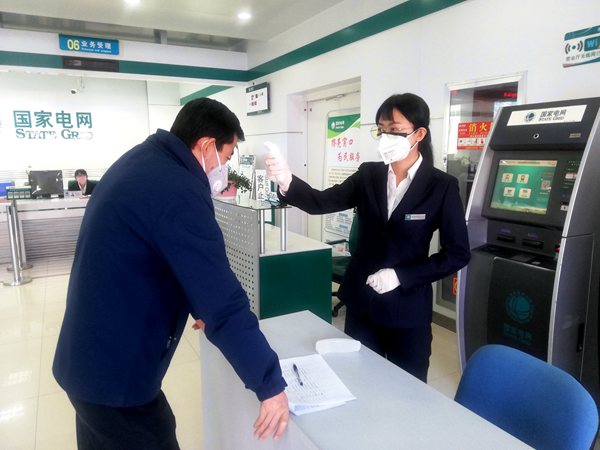 每天提前一个小时到岗,戴好手套和口罩,先对服务窗口和服务设施进行消毒杀菌,做好抗疫期间的安全防护。在微信、抖音等平台宣传网上办电业务,减少线下办电人次,保障大众安全。每一位来营业厅办理业务的客户,我们都要使用测温仪测温并记录,确保业务安全办理。