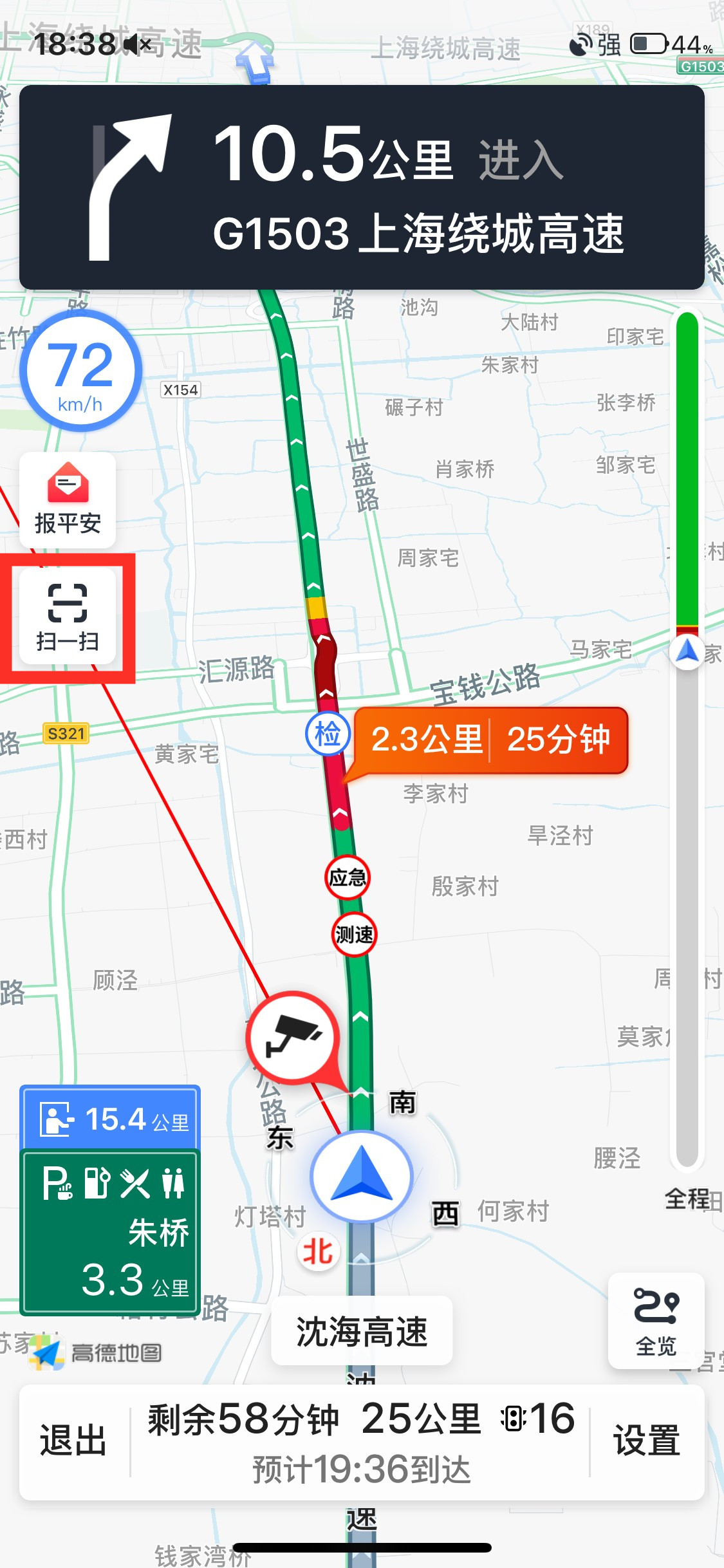 在导航中,当车辆临近防疫检查站时,系统也会通过消息和语音提示司机排队距离以及通过时间,提醒司机“提前关闭暖气,配合检查”,并做好信息登记。除线上入口外,用户也可利用导航页面中的扫码功能扫描检查站内的线上登记二维码,直接进行信息填写。