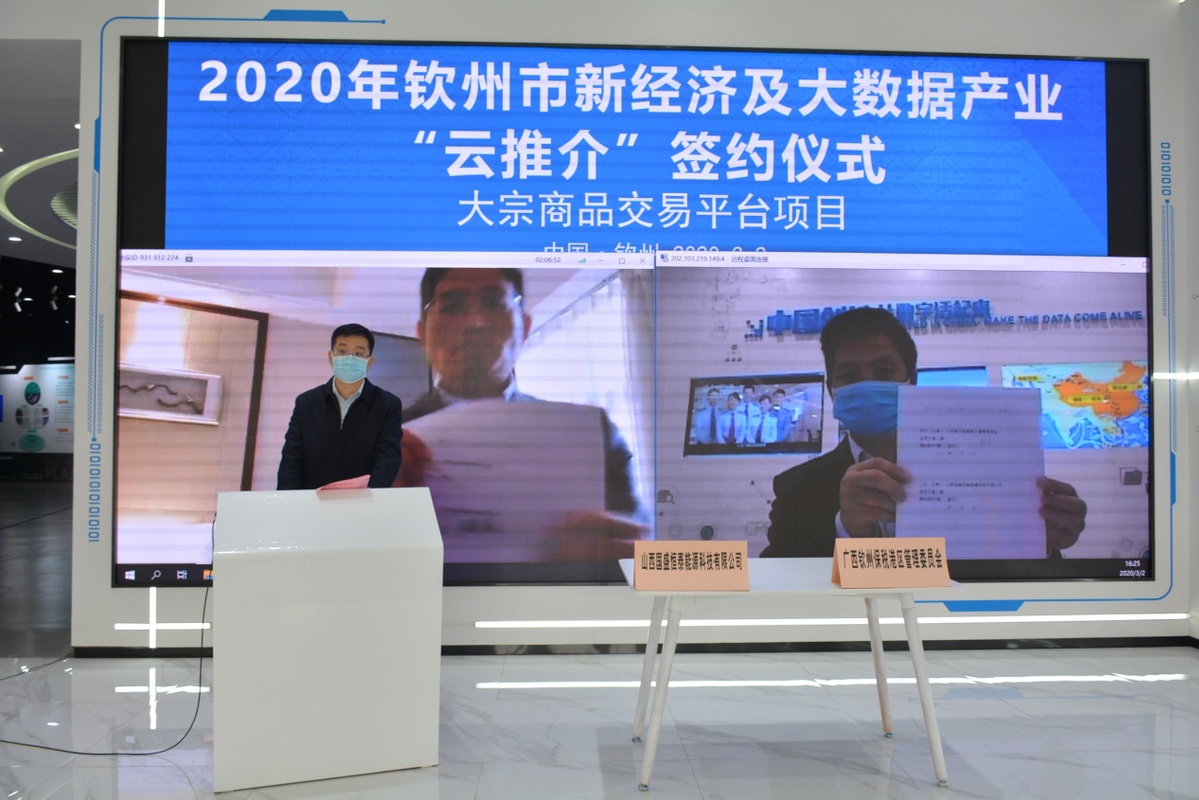 3月2日,一场全新模式别开生面的“云推介”招商活动在钦州华为数字小镇举办,这是钦州市继“云签约”不见面招商以来,继续创新招商方式,运用云视频会议平台及5G无人机等新兴技术产品,打造“云端会议厅”,在广西率先开展5G“云推介”“云考察”“云直播”,全方位多视角开展“不见面”全球招商活动,钦州市委副书记、市长谭丕创在线出席会议并致辞,副市长黄毅主持会议,广西钦州保税港区管委会副主任、钦州自贸办主任王文远出席会议并推介。