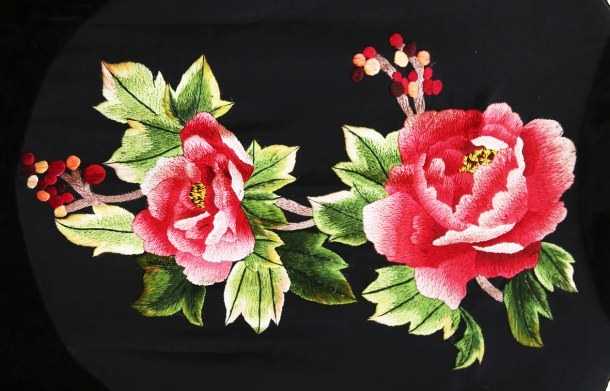 是用丝线绣制的手工品,具有配色大胆、对比强烈、朴实无华等特点,主要产品有绣花鞋、手帕、胸花、枕套、童帽、荷包等。