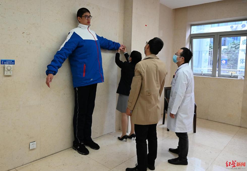 当天的挑战在乐山市人民医院进行,据陆蕾介绍,根据“最高的青少年(男性)”吉尼斯世界纪录称号挑战的基本规则,挑战方需是13岁到18岁男性,挑战者不能超过18岁,而此项纪录的原纪录保持者均已超过了18岁。