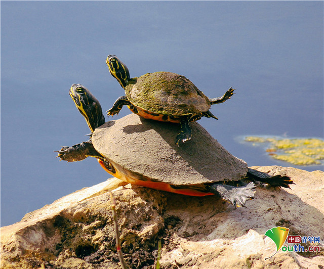 当地时间2013年12月9日报道,近日一组龟宝宝被妈妈背着学习游泳的照片曝光,龟宝宝在妈妈的龟壳上与妈妈同望蓝天并抬起一条小腿的画面引发网友大呼可爱。据悉,这组照片拍摄的正是龟宝宝学习划水的场景,当时一只小龟被妈妈背着,与妈妈一同仰头,并有一条腿扬起佯作划水,场面十分温馨。这组照片是一名学摄影的学生曼萨罗(Maria Manzano)在美国佛罗里达州瓦湾公园内拍到的。摄影师表示,当时她正在当地公园散步,然后看到了一处湖泊,她按下快门拍摄了许多照片,然后突然发现小龟母子。曼萨罗介绍说我无法相信自己看到的东西。最开始,我以为它们是一个放置在那的雕像。但之后我发现它们在活动腿部和脖子,就好像在游泳一样。更奇妙的是,它们好像并不害怕我。这太有意思了,像家长教小孩一样。
