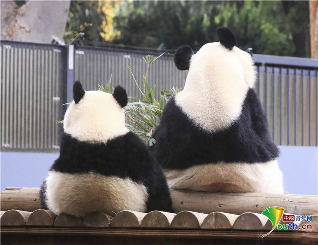 当地时间2018年11月12日,日本东京,上野动物园,大熊猫“香香”和妈妈“真真”在它们的围栏里放松。大熊猫“香香”出生于2017年6月12日,它即将开始独立生活。