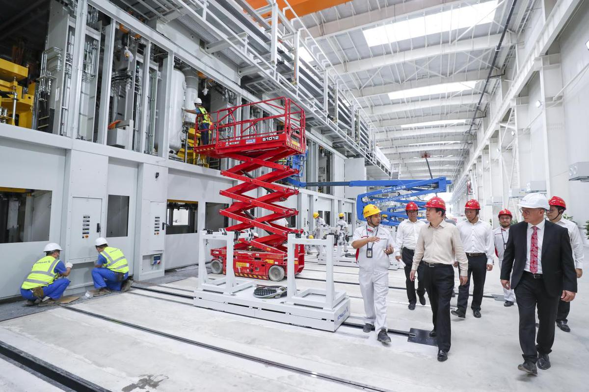 许家印视察恒大汽车生产基地冲压车间