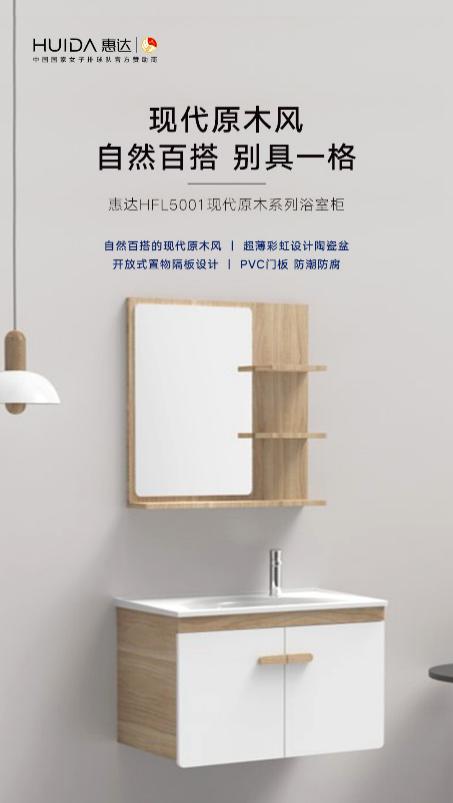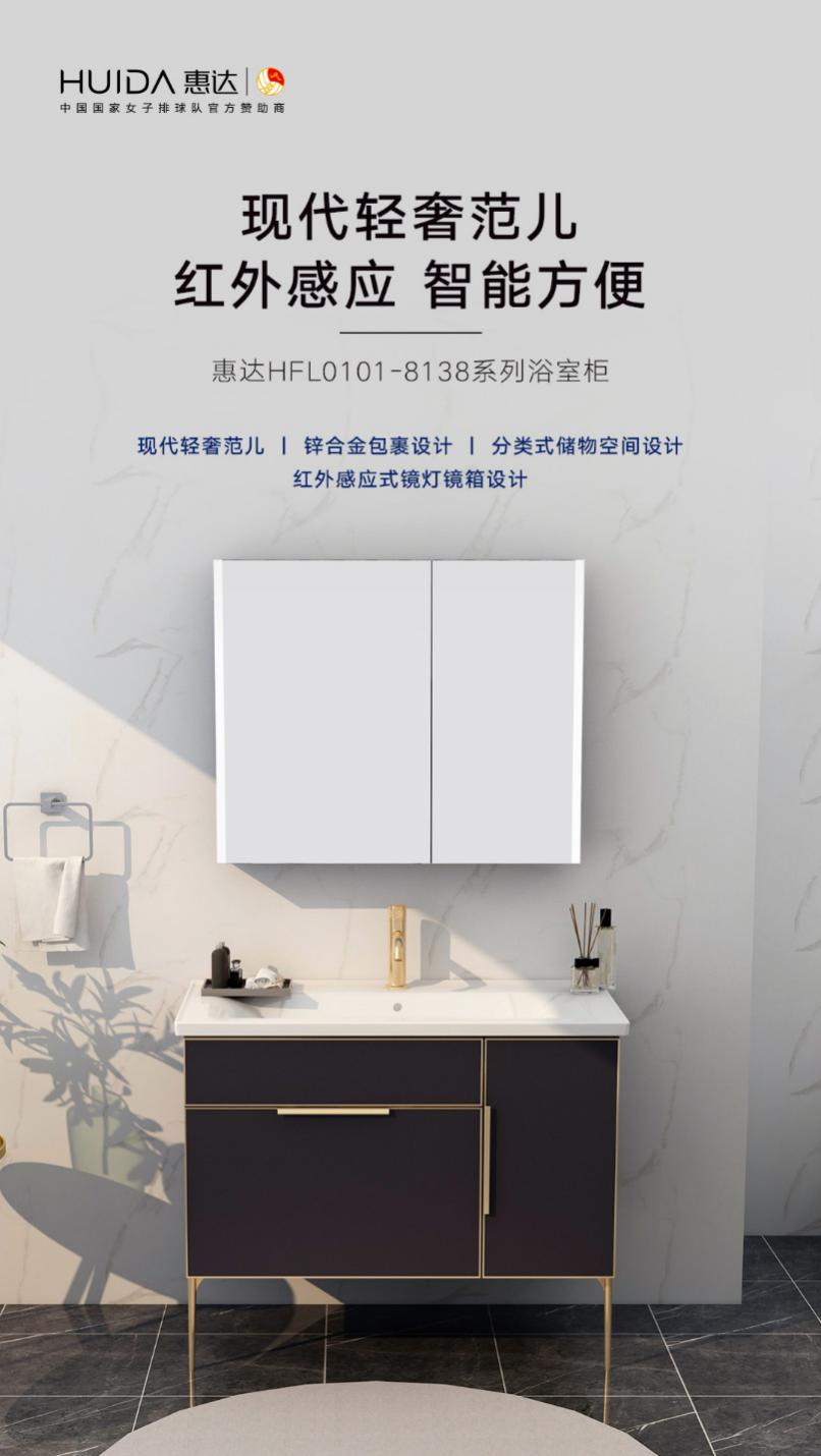 惠达6大新品浴室柜震撼来袭!简美轻奢、新中式和简欧现代风格,风格百变;清新自然的现代原木系列和沉郁内敛的工业风系列,随君挑选;分类式储物空间设计,更懂收纳;智能感应镜箱设计,更加智能。